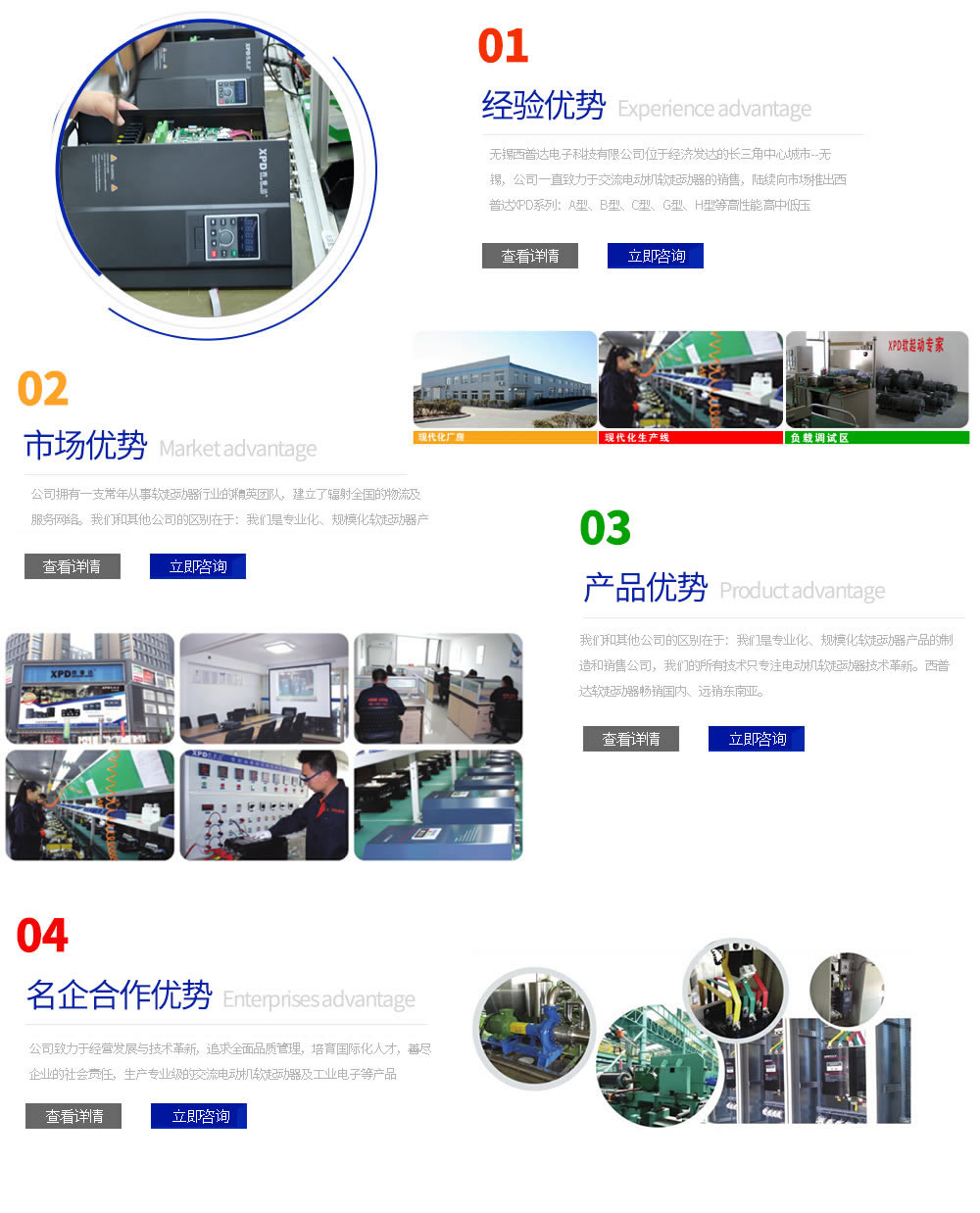 無(wú)錫西普達(dá)電子科技有限公司位于經(jīng)濟(jì)發(fā)達(dá)的長(zhǎng)三角城市--無(wú)錫,公司一直致力于交流電動(dòng)機(jī)軟啟動(dòng)器(軟起動(dòng)器)的銷(xiāo)售,陸續(xù)向市場(chǎng)推出西普達(dá)XPD系列:A型、B型、C型、G型、H型等高性能高中低壓(380V,440V,660V,1140V,3300V,6KV和10KV)軟啟動(dòng)器產(chǎn)品,公司擁有一支常年從事軟起動(dòng)器行業(yè)的精英團(tuán)隊(duì),建立了輻射全國(guó)的物流及服務(wù)網(wǎng)絡(luò)。